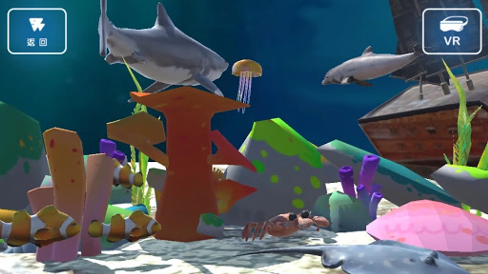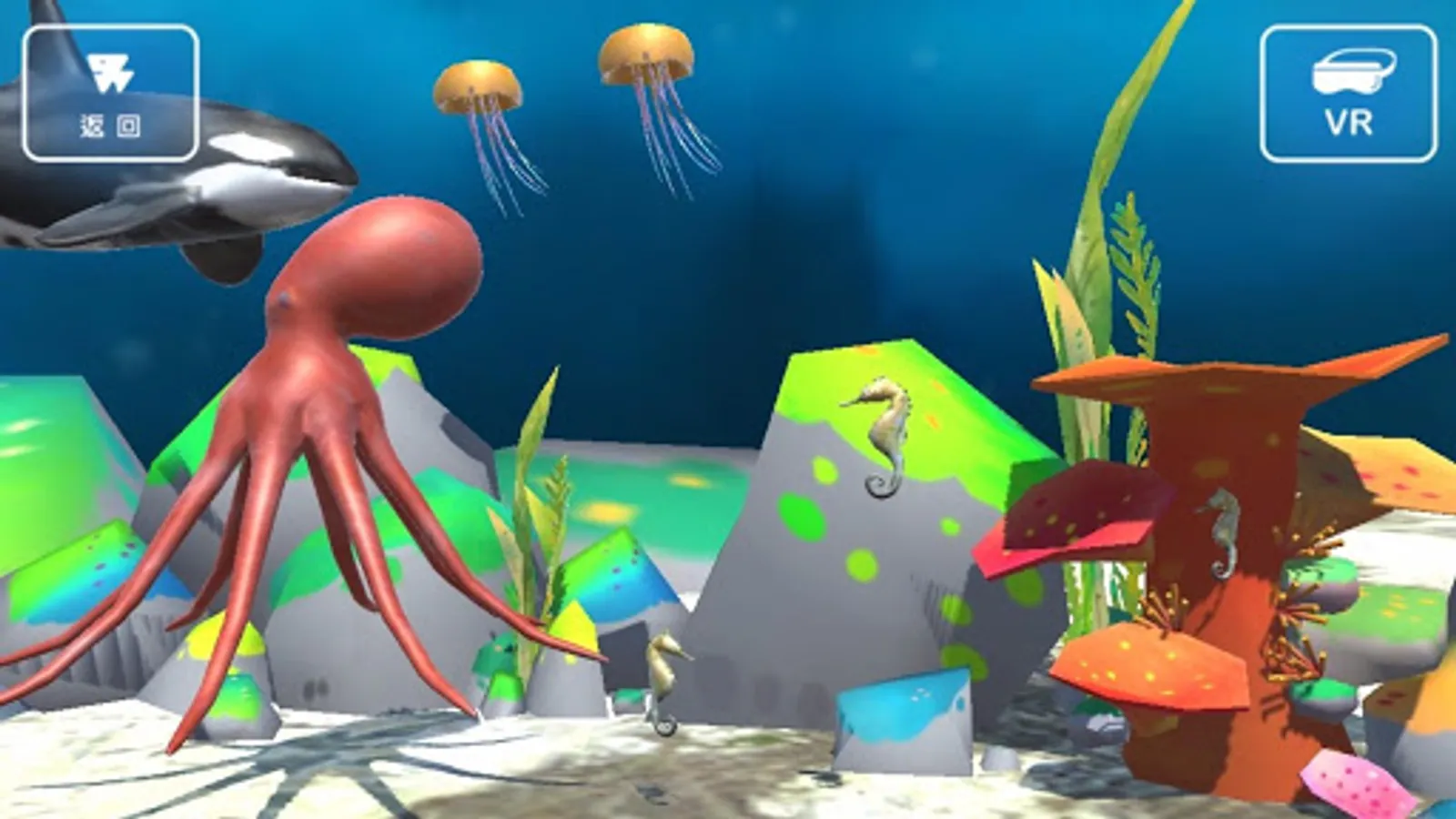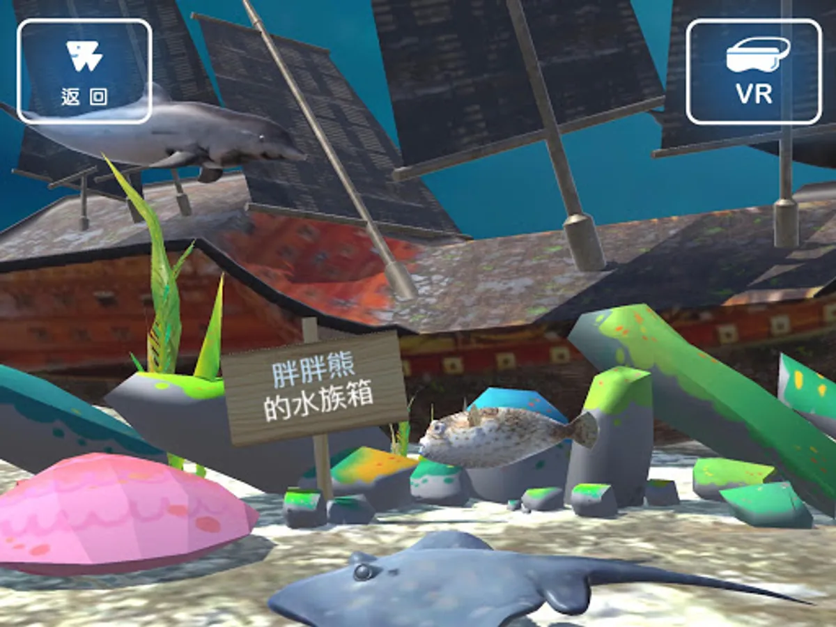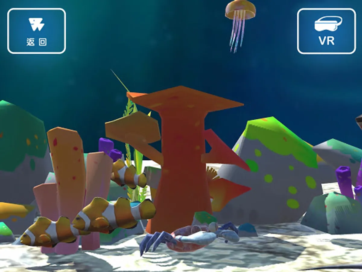 口 透過最夯VR虛擬實境技術讓自己彷彿優游探險自己創造的海洋世界並與每一隻主角互動。讓玩家在新鮮、活潑、互動的情境中,培育對海洋生物百科解密知識。
