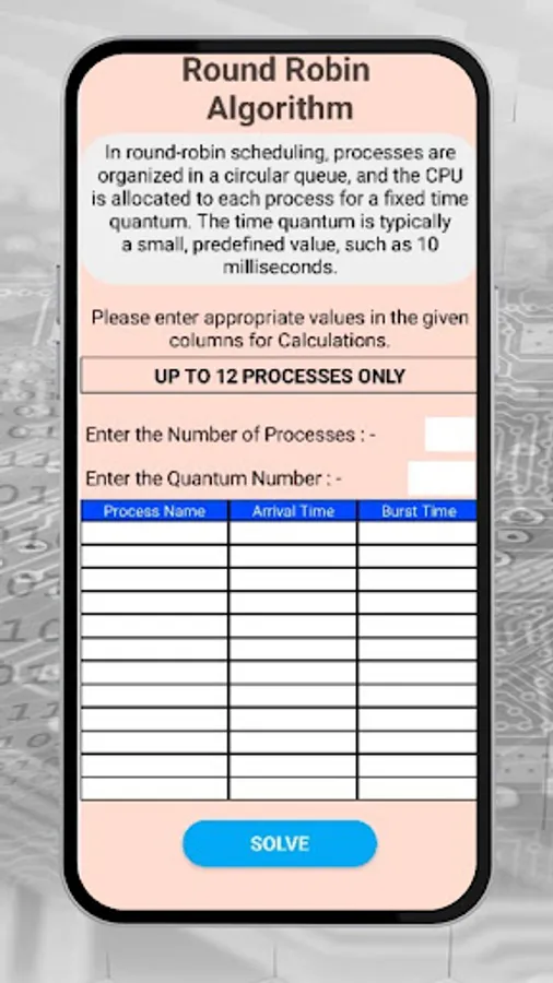 Boost your system's efficiency with CPU Scheduling Calculator, a powerful app designed to optimize CPU scheduling algorithms. Simulate and analyze various scheduling strategies like FCFS, SJN, RR, and more. Uncover insights into waiting times, turnaround, and CPU utilization. Perfect for students, developers, and IT professionals seeking to enhance system performance. With a user-friendly interface, compare and evaluate strategies effortlessly. Take control of CPU scheduling! Simulate and analyze CPU scheduling algorithms. Explore various strategies including FCFS, SJN, RR, and more