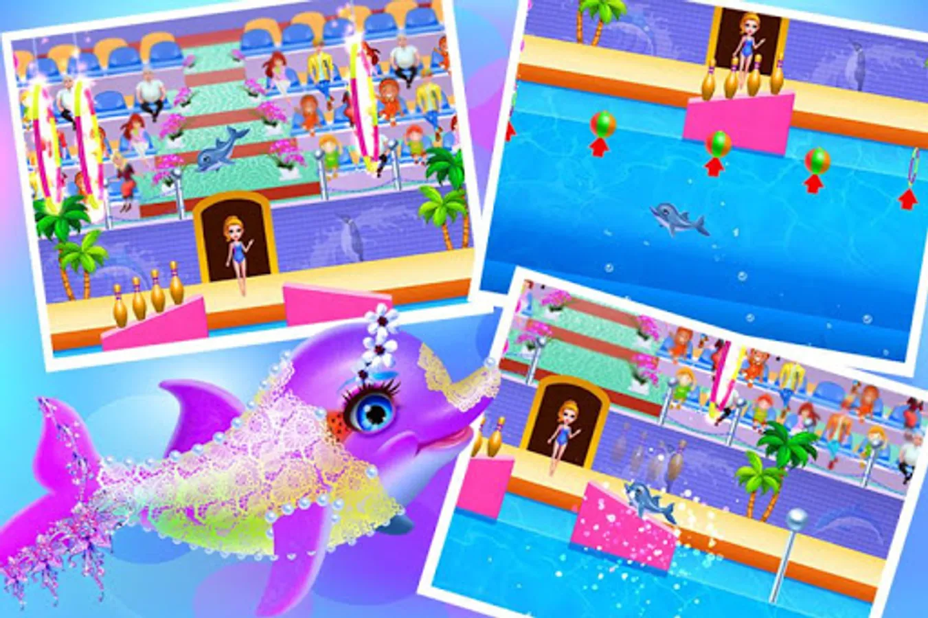 Wow, the dolphin training show must be very excellent. There are lots of audience today want to see the nice and clever dolphin’s show. Let’s start the show immediately. Catch some small fish to cure the dolphin firstly. Try your best to make up for the beautiful trainer as beautiful as you can and dress up for the dolphin lovely. Let the dolphin have the most wonderful performance to show us today.