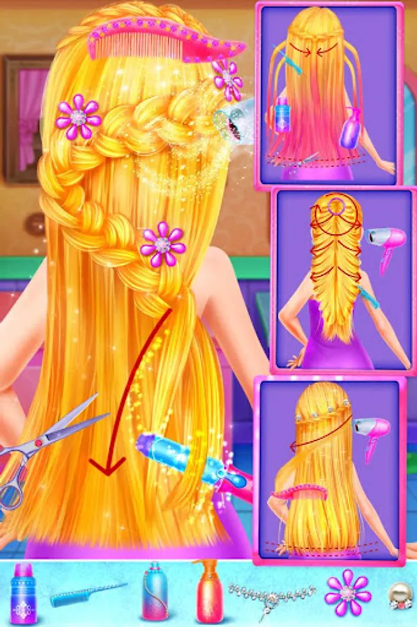 Long hair princess is really attractive today. She will have a nice performance show and now she needs to have a spa and make up beautifully to leave a good impression to the people. Let’s start to help her make up and show us your excellent fashion skills. Try your best to make long hair princess as beautiful as you can.