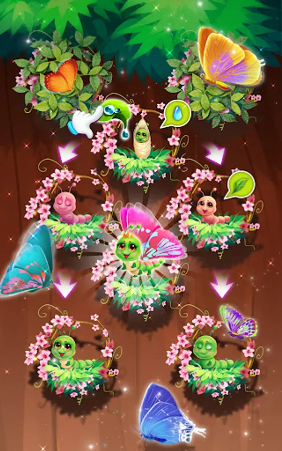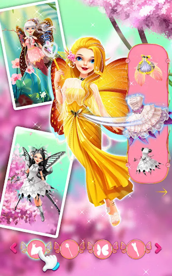 Here comes to the butterfly fairy!Here, you can synthesize and dress up the beautiful butterfly fairy.We can personally cultivate hatching larvae and make them from pupae to caterpillar and finally into a beautiful butterfly, which needs us to help them grow healthily.There are different butterfly varieties here, such as vegetable butterfly, tiger butterfly, blue butterfly, golden dress butterfly and so on ,to be selected.Each butterfly has beautiful wings and gorgeous patterns, with their unique features.You can obtain more high-level new butterflies through synthetic butterflies, and the variable butterflies may appear, and you can also summon the dress up items through these butterflies, such as lipstick, eye shadow, blush, dress, etc., to dress up the butterfly fairy.Finally, you can learn about your own butterflies and sets through the guide.
