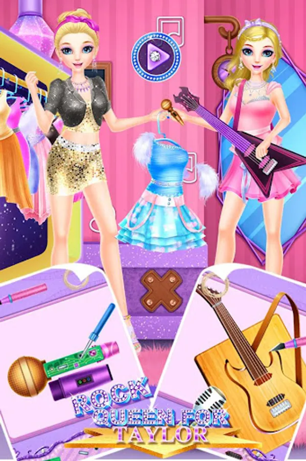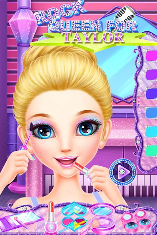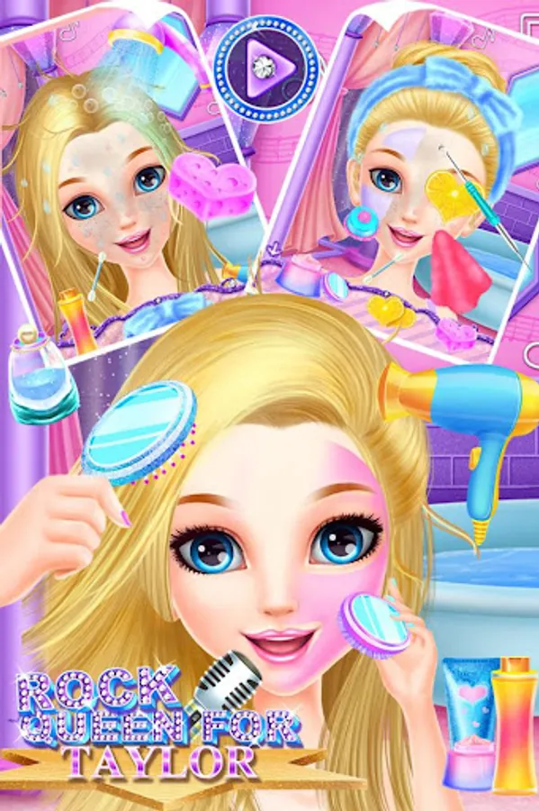There is beautiful Rock Queen called Taylor. Today she plans to have a show performance. Are you willing to help her make up beautifully and design one nice guitar for her to let her have an unforgettable performance? Come to join our brand new game and have fun. First step is nursing. You need to help the girl have a facial spa. Clean her hair and then dry it. Comb her hair to make it look smooth. Then you can fix her hair and wash her face with facial cleanser and then get rid of those red pimples on her face one by one. After that, come to make facial and eyes masks for her and put some facial creams to make her face skin look fresh. Second step is making up. You can use our given cosmetics to make the queen look amazing. Third stage is dressing up. Try your best to dress up the girl with fashion clothes and accessories. Fourthly, you need to help the girl design a new guitar. You can choose to play whack-a-mole or receiving fruits games. Follow our instructions to make a new guitar steps by steps and then decorate the guitar with different kinds of decoration materials. In the fifth stage, new microphone for her. Then come to make a new microphone for the queen’s sing. We will show you the methods of making microphone. After producing microphone, you can decorate the microphone to make it look cool. At last, through your efforts, the rock queen will have a nice concert. Show us in the end.