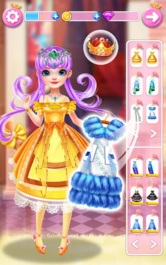 There are plenty of dresses and cosmetics in the dressing room. Hurry up!dress up the princess, and write a beautiful fairy tale together!