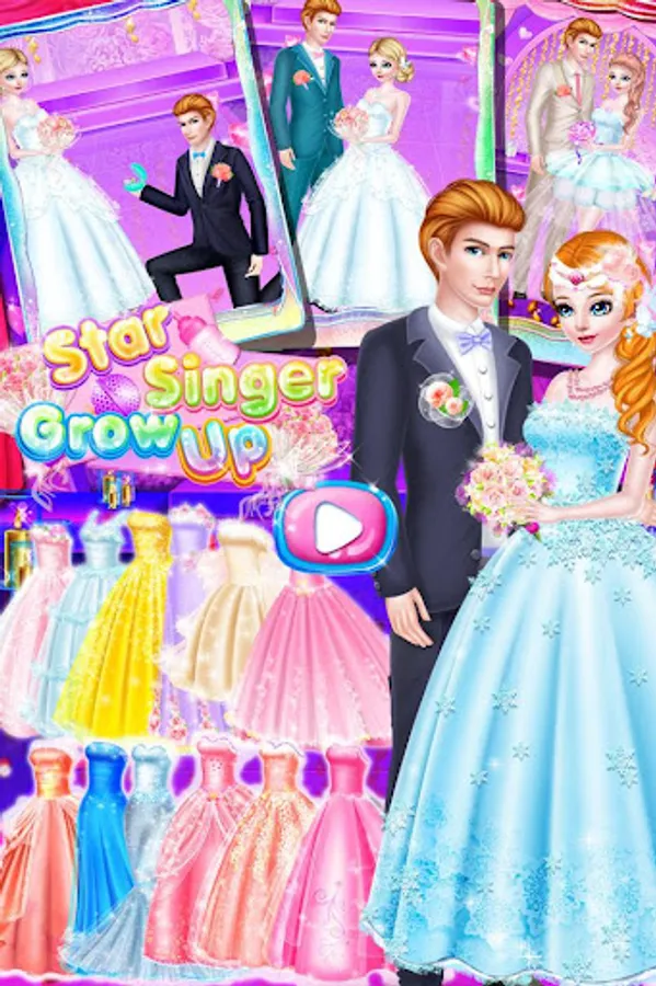 There is a beautiful lady who were proposed by her beloved prince one day. She is very happy and they will hold a wonderful wedding soon. Come to help this nice couple to dress up with wedding dresses and accessories. After their wedding, the beautiful lady is pregnant and you need to play the role of doctor to help have a checking to see whether her baby is healthy. Use our given medical tools to check her blood pressure, temperature and heart rates of her baby step by step. Then when she is going to give birth, you need to take care of her. Give her one piece of cake and let her drink some water. Help the lady have some oxygen and then she will give birth of the baby successfully. Use the towel to dry the baby and wrap her up with the quilt. Next you can come to look after the baby carefully. Change her diaper and feed her with milk. Then dress the baby up with lovely clothes. After that the baby will grow up and you can play with her happily. This little girl loves singing very much and can play various kinds of musical instrument. She has become one famous star singer. In next stage, the girl will go to school for classes of math and art. Follow our instructions to help the girl do well at school. In the following stage, you need to dress up the star singer with fashion clothe and accessories for her concert. At last take a picture for her father, mother and she together to show us.