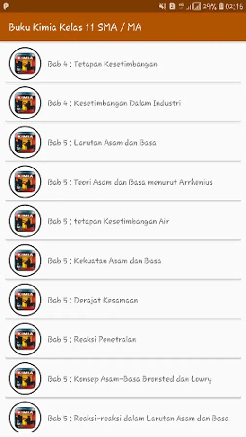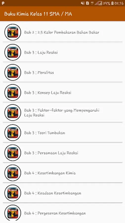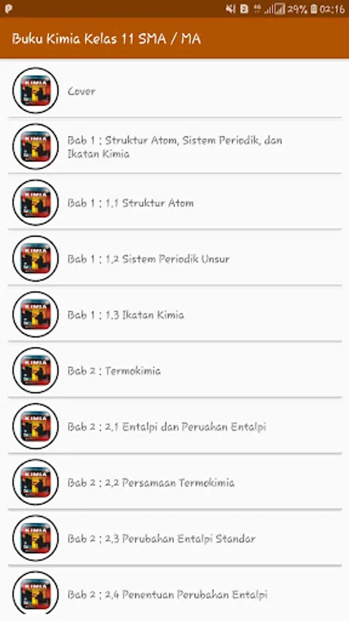 This High School / MA Class 11 Chemistry textbook application uses the latest revised edition 2013 curriculum. This application can help students and teachers to be used as a means of learning electronically, it is hoped that this application can make it easier for high school students to study hard wherever they are