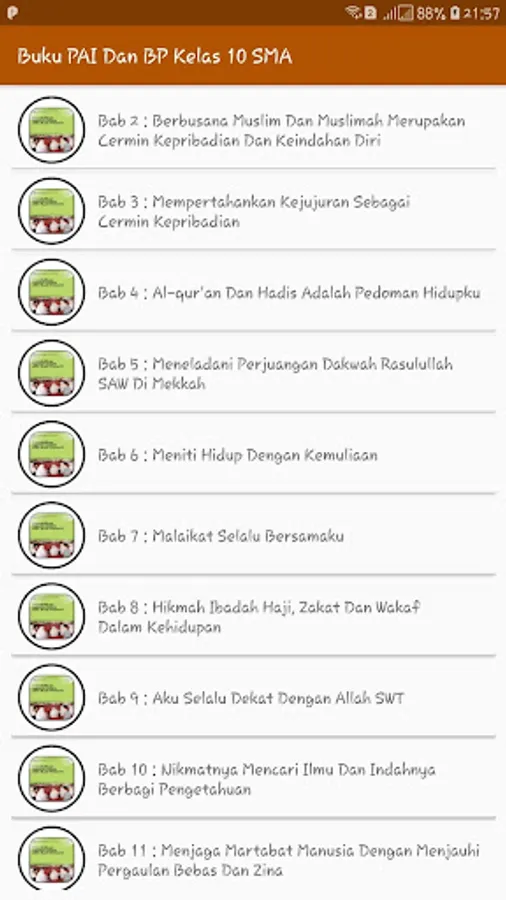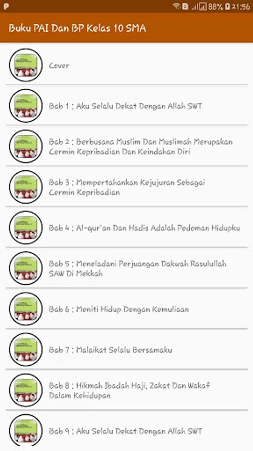 This PAI and BPKelas 10 book application for SMA / MA / SMK uses the latest revised edition 2013 curriculum. This application can help students and teachers to be used as a means of learning electronically, it is hoped that this application can make it easier for high school students to study hard wherever they are