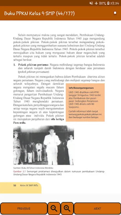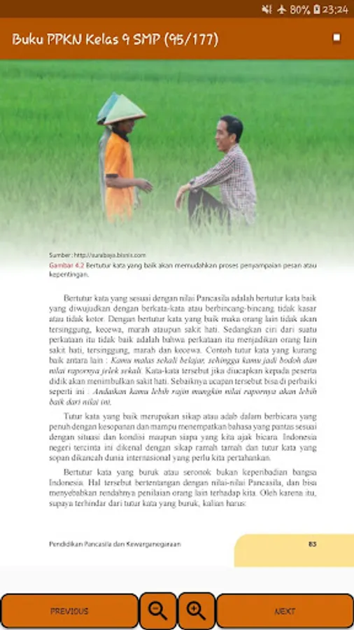 This PPKN Class 9 SMP / MTS book application uses the latest revised edition 2013 curriculum. This application can help students and teachers to be used as a means of learning electronically, it is hoped that this application can make it easier for high school students to study hard wherever they are