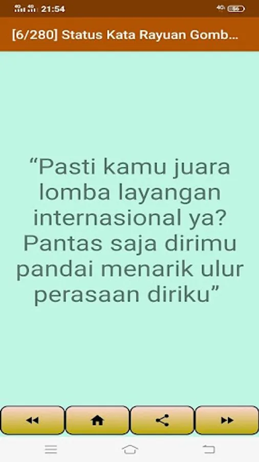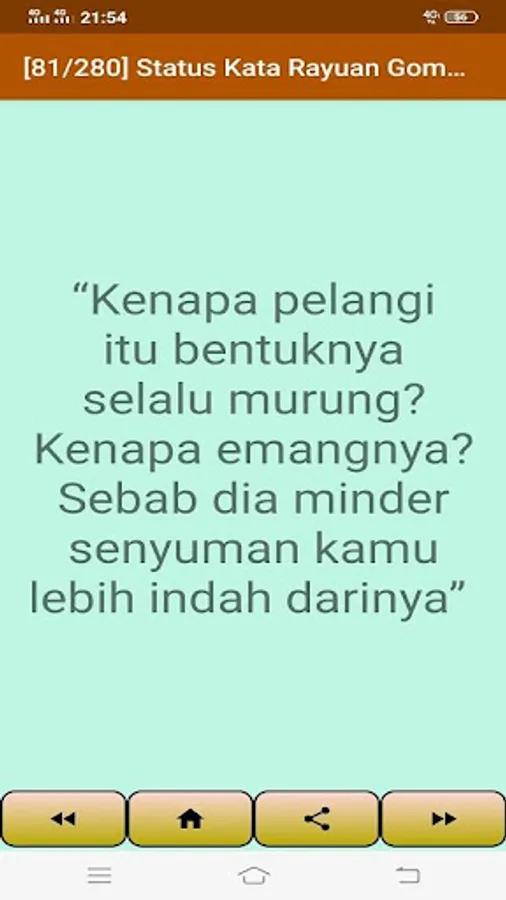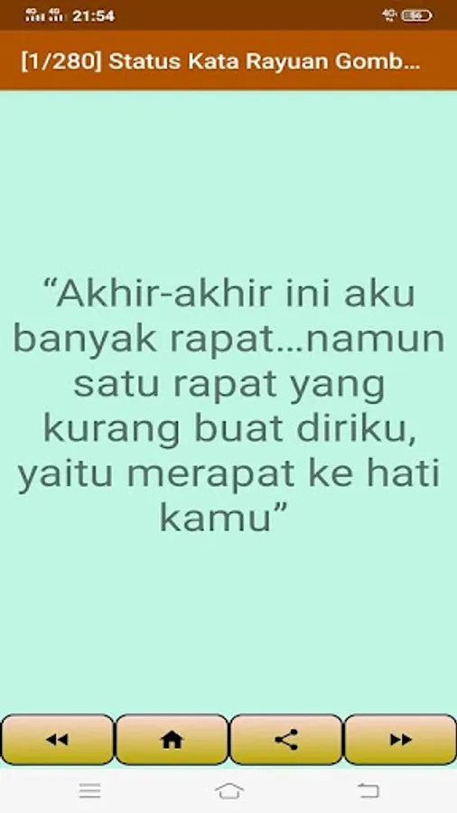 This rambling flirt word application contains words of seduction that you can pour on gebetan, girlfriend, wife, husband, friends and much more. You can pour out and share your heart's content with the words in this application to be shared with your favorite social media.