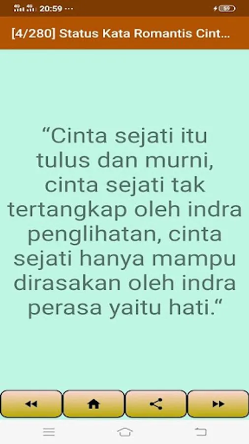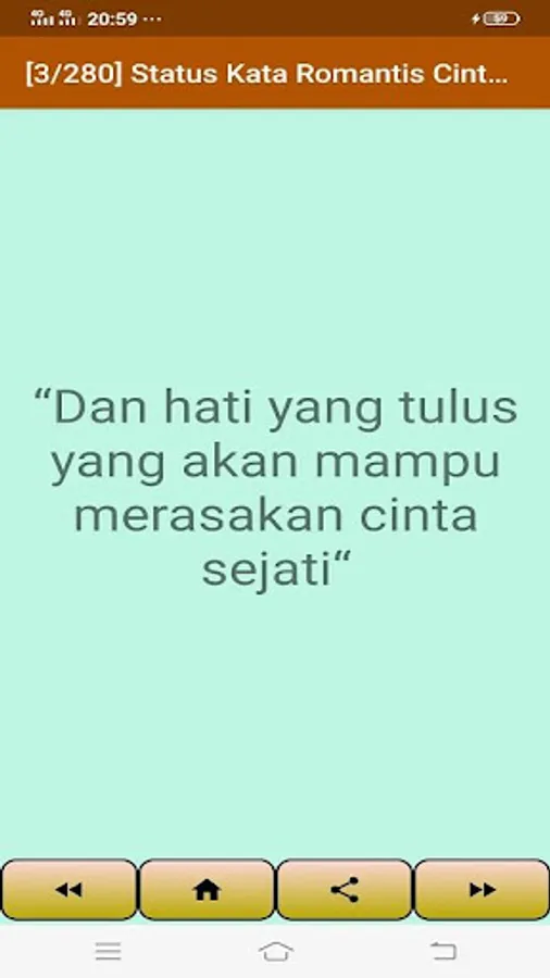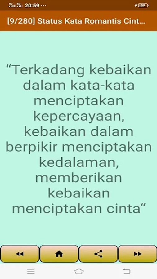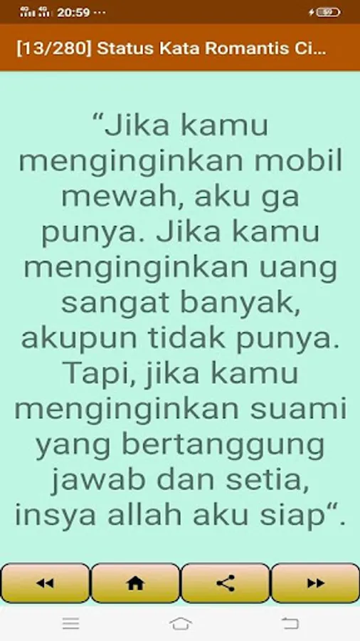 There are various types of words of love contained in this application. ranging from the word funny romantic love that is light to the word love confusion and sadness that is very emotional.