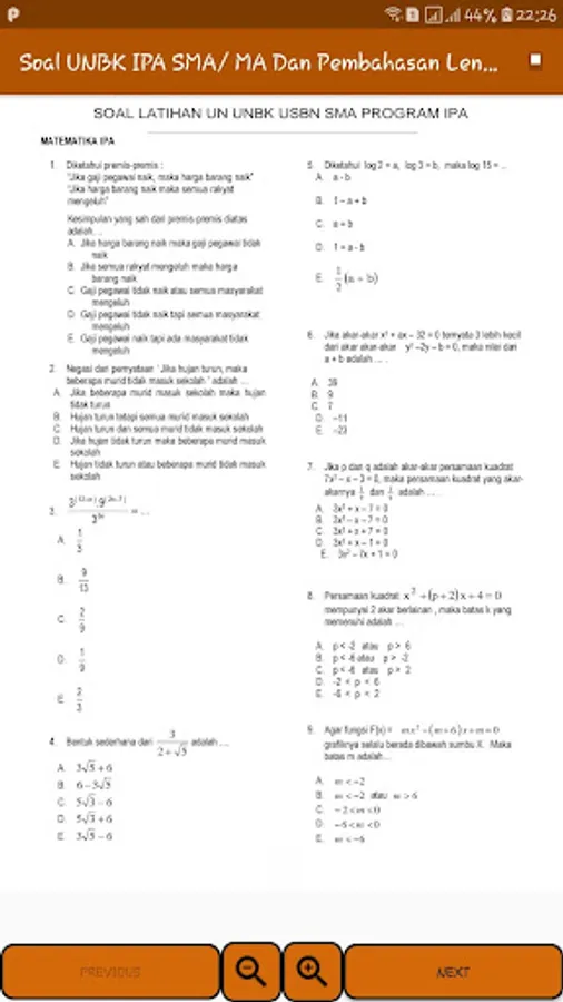 Application of UNBK IPA SMA / MA questions and complete discussion. This application contains practice questions to face the computer-based national exam. With this application you can more easily learn wherever you are and be more practical. this application you can use as a learning tool to attend UNBK later so that you can be confident and ready. Hopefully this application can help high school / MA students to study and be ready to face the computer-based national final exam.