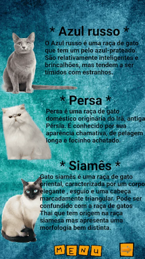 In the BREEDS menu you will know a little of each breed of kittens from around the world ...