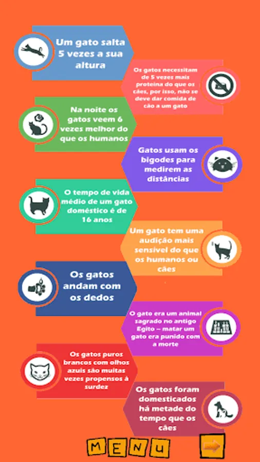 In the TIPS menu you will have some tips to live well and at peace with your cat and FELIX