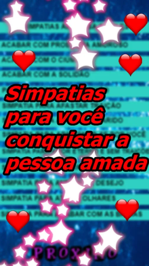 Come to know the most complete app, with love spells and sympathies, are you in love with someone? come to know the best sympathies and be surprised by the positive results of the magic of love ... Many spells and sympathies ... They are: