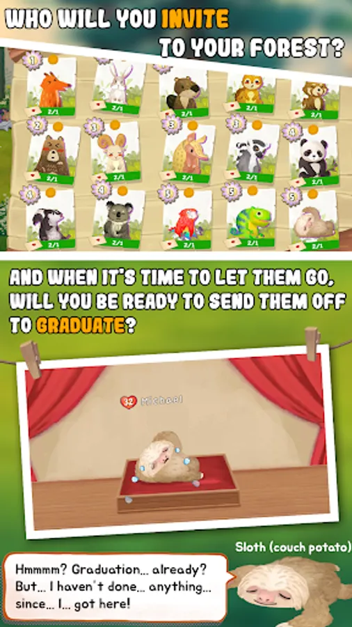 Furry friends enter Fuzzy Seasons: Animal Forest and eventually graduate! You are the owner of the garden!