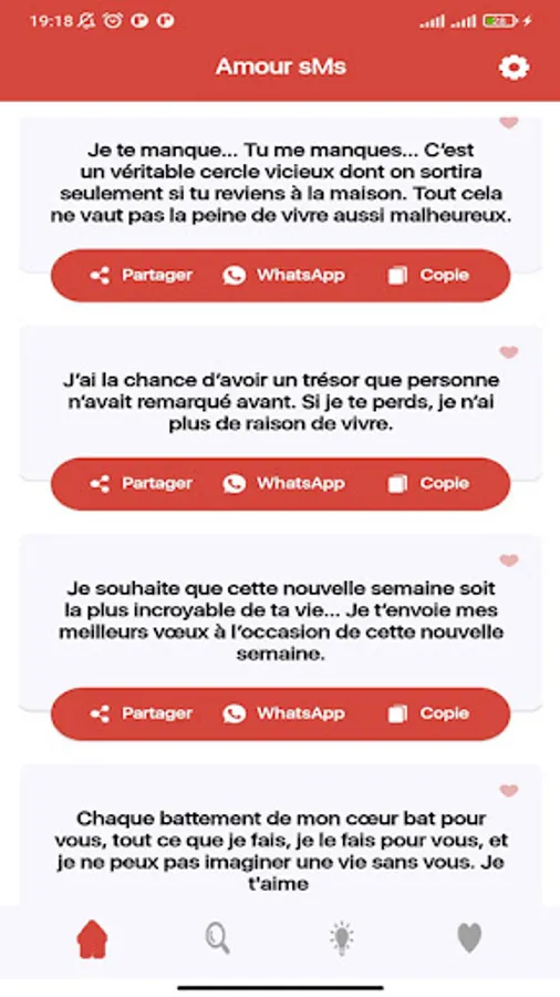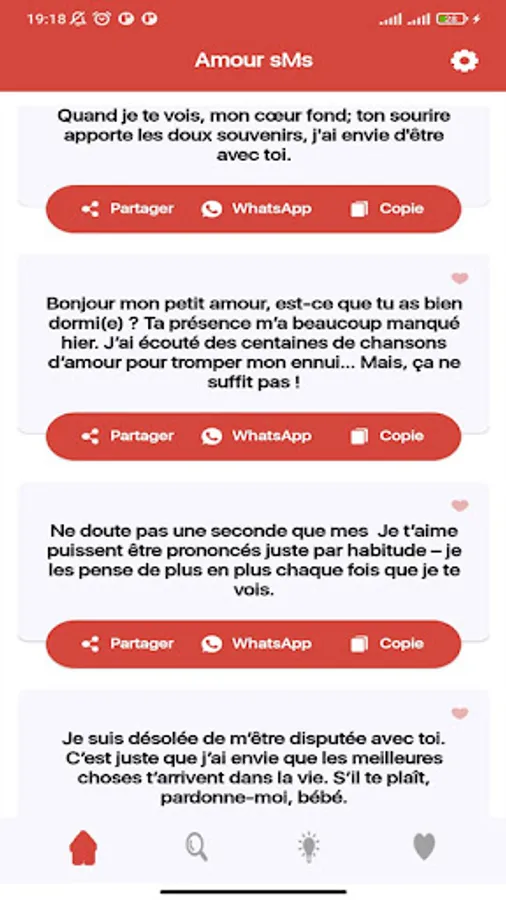 ** Each SMS can be shared on Facebook, Twitter, WhatsApp, Google+ or SMS/Mail