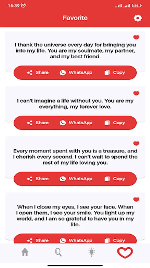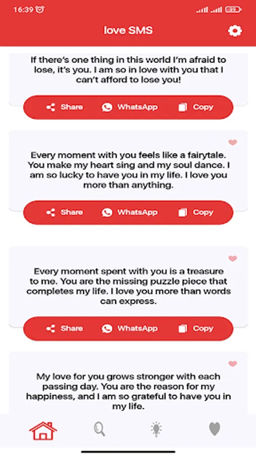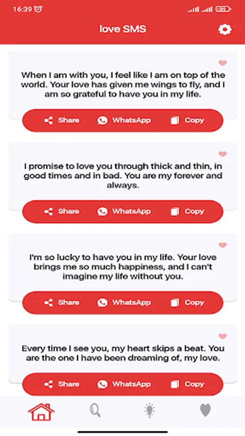 ** Each SMS can be shared on Facebook, Twitter, WhatsApp, Google+ or SMS / Mail