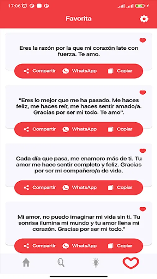 The phrases that you will find in the application are short but powerful, perfect for sending by SMS and letting your loved one know how much you love them. Whether you're looking for a sweet and romantic way to express your love, or something a little more fun and playful, you'll find plenty of options to choose from.