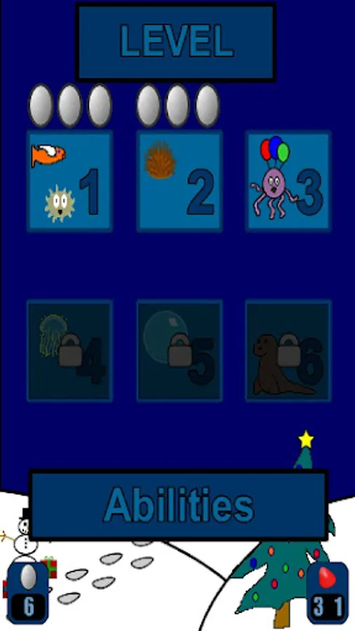Jump (the penguin) has had his little baby egg stolen by the evil aqua league of sea creatures. Help Jump recover his egg by reaching the aquarium at the top of the level! Unlock and use jumps abilities to help avoid being caught by the minions of the evil aqua league of creatures or throw snowballs to freeze them!