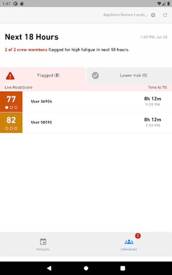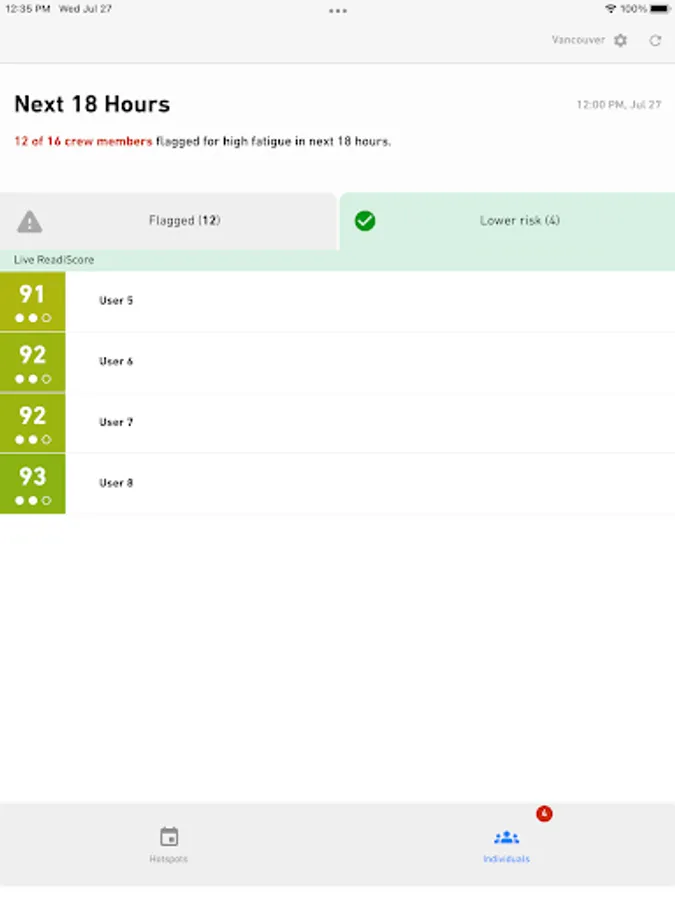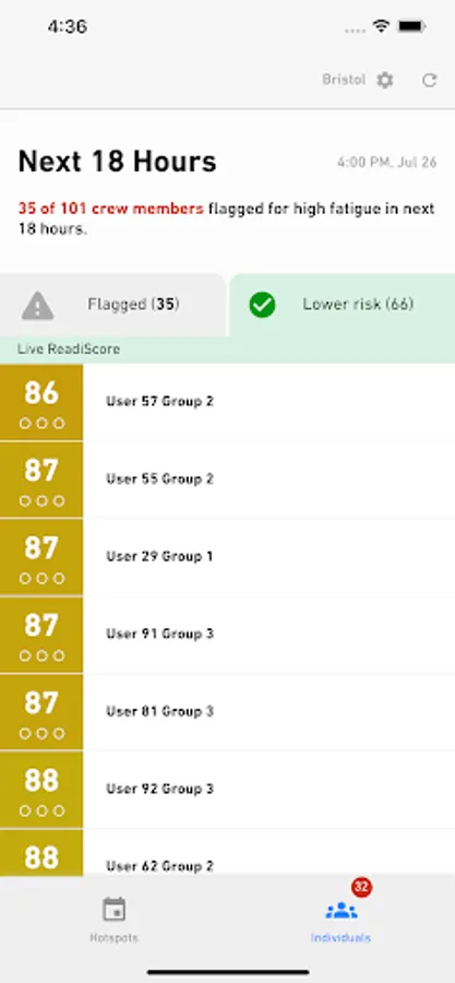 ReadiSupervise enables shift supervisors and dispatchers on the Readi FMIS platform to get a bird’s eye, predictive view of on-duty fatigue in their crew. Supervisors receive notifications at the start-of-shift that indicate operators who are flagged for high fatigue risk, and they can view flagged operators in a single tap. From there, supervisors can proactively manage task assignment to ensure the right worker is assigned the right task at the right time — enhancing productivity and safety, and ensuring shifts run smoothly and effectively. One-tap intervention logging enables seamless record-keeping, without distracting supervisors from the core of their operations.