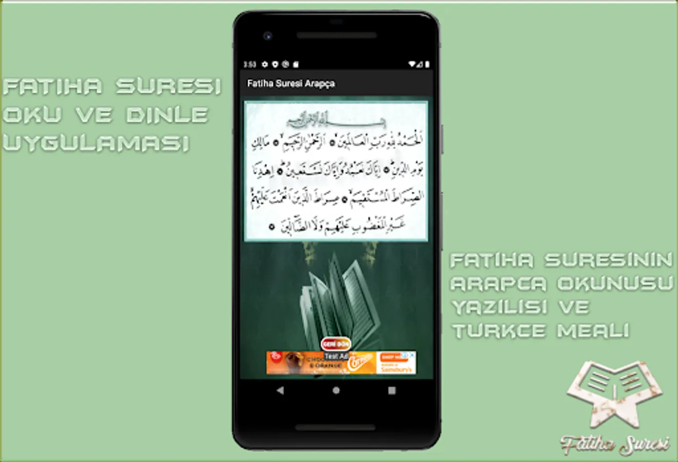 Surah Fatiha Duası Application has a simple and useful interface and includes Arabic script, Turkish reading with Turkish language and an mp3 file that you can listen to. You do not need internet access to use the application.