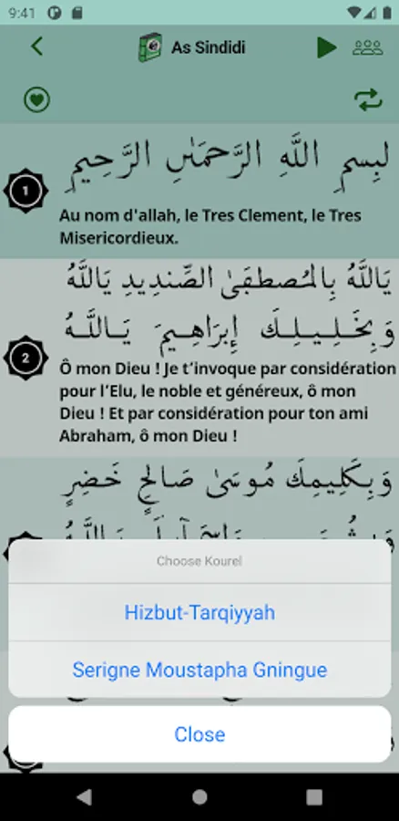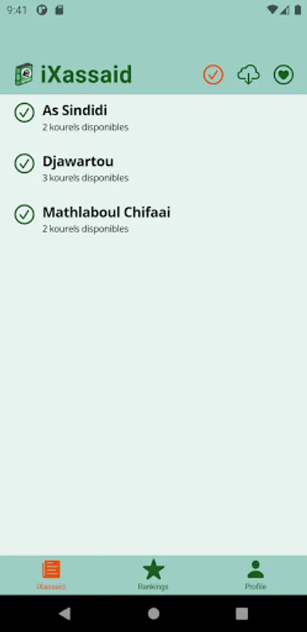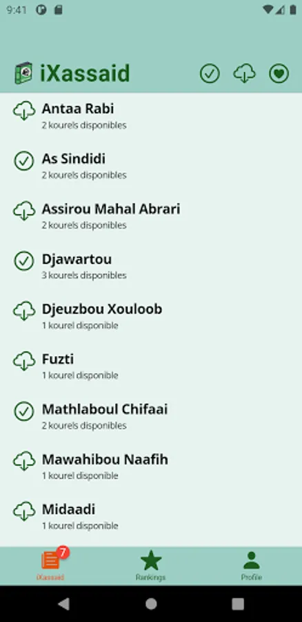 The application gives the possibility to listen to several versions of the Xassaid meme and choose your favorite kourel. It is also possible to register voluntarily to access all the other Xassidas already available.
