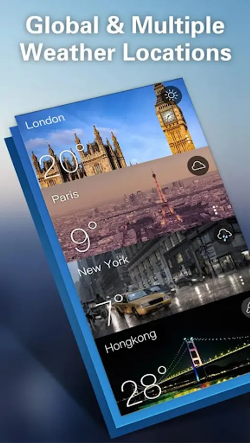 Weather app is a weather channel let see weather of many cities and anywhere. Users can see London weather, Paris weather, San Francisco weather, Houston weather...by typing the name of cities on location screen.