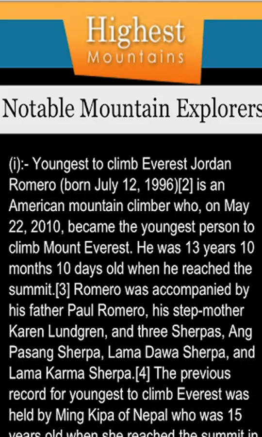 Learn and explore the Highest Mountains in the World. Watch videos of Amazing adventures as climbers strive to reach the summit. Take our Mountain Quizzes to test your Mountain knowledge. This is a must have for students, teachers, parents, nature lovers, and every one who wants to learn about these amazing landmarks.