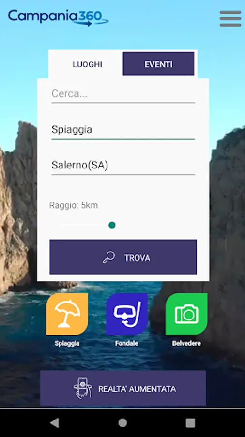 App for searching and consulting the best P.O.I. and Events in the Campania Region: