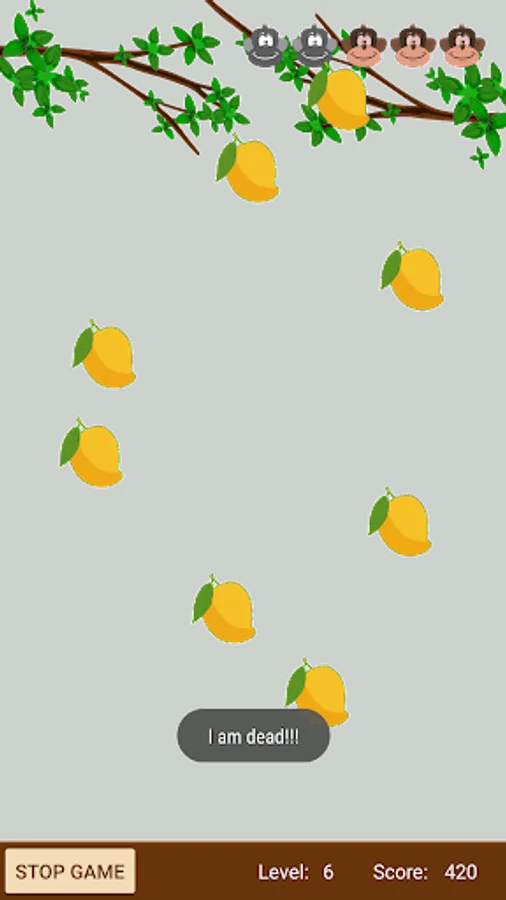 Touch fruits that's coming down and you will get points, if fruits fall in the ground one monkey will die. You have total five monkeys. If all of the five monkeys dies, you lost the game.