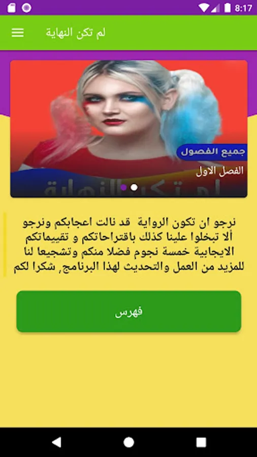 Download a novel application that was not the end and read the story to know the details of this dramatic and romantic novel. For any suggestions or questions, please contact us directly. Thank you very much