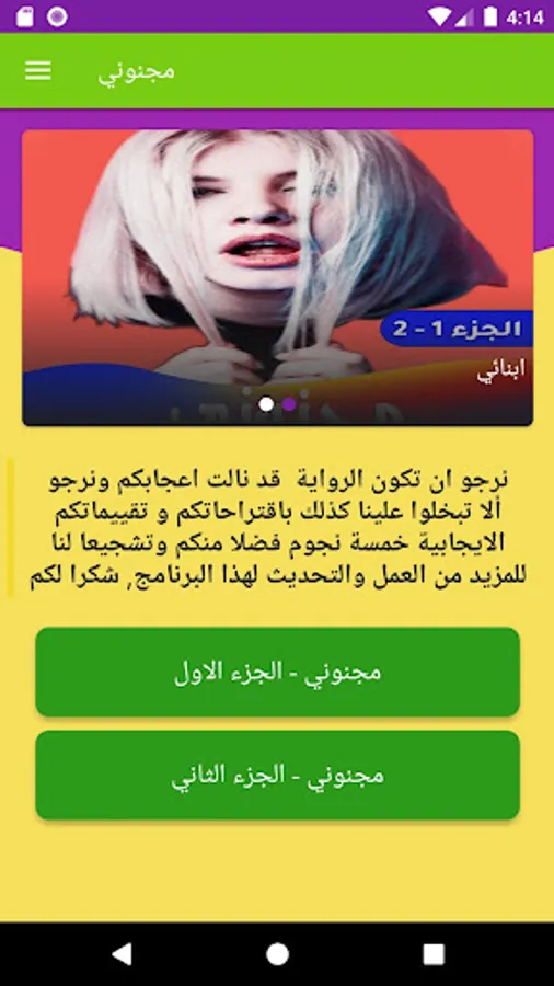 We hope that Majnouni's novel has won your admiration, and we hope that you will not skimp on us as well with your suggestions and positive evaluations of five stars, as well as your encouragement to us for more work and updating of this program, thank you.
