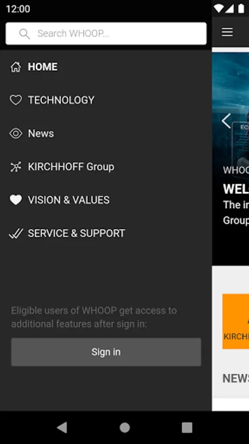 WHOOP is the information app of the KIRCHHOFF Ecotec.