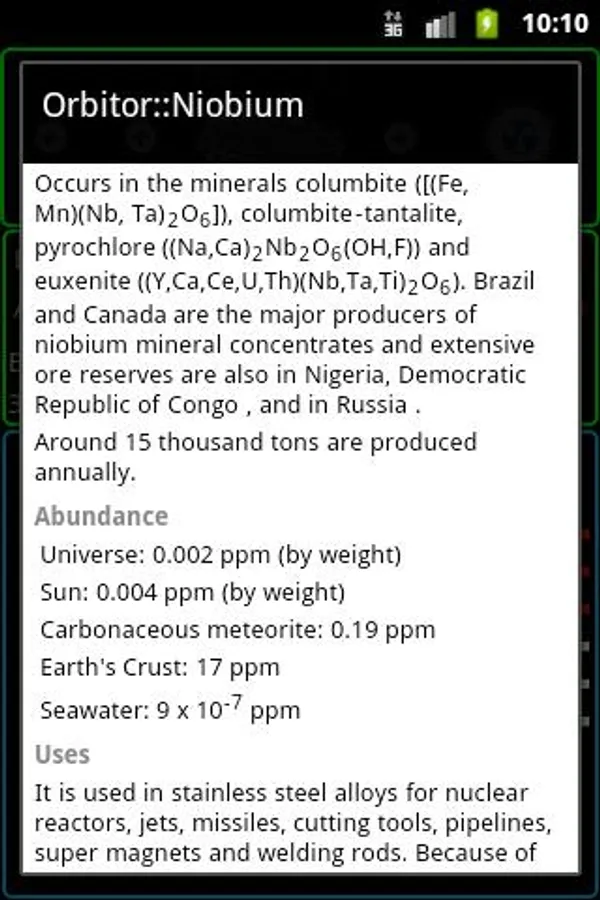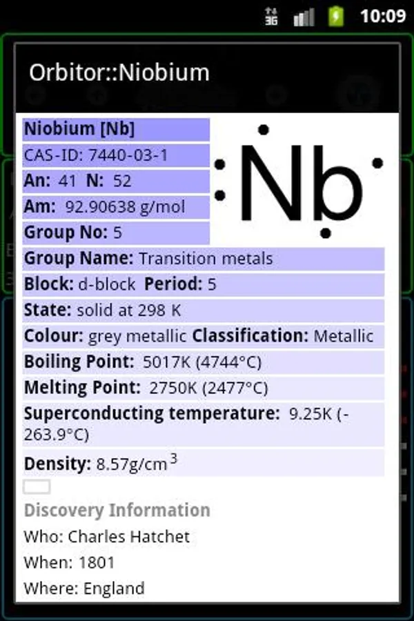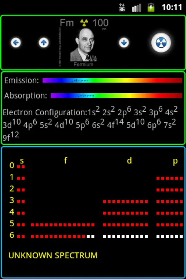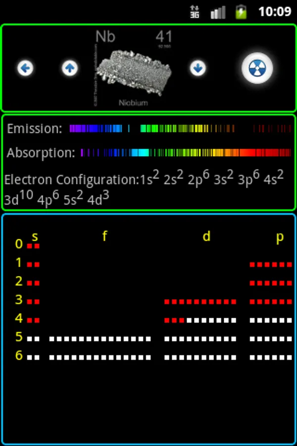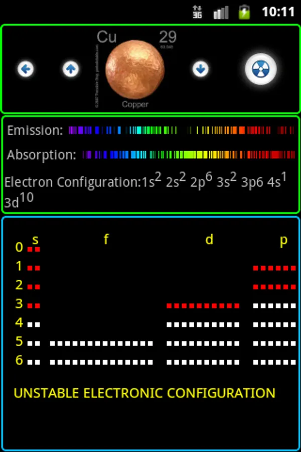 You will be able to quickly determine the atomic orbitals and electronic shells, discover the atomic spectra (absorption and emission spectra) and a quick wiki with very useful information like: