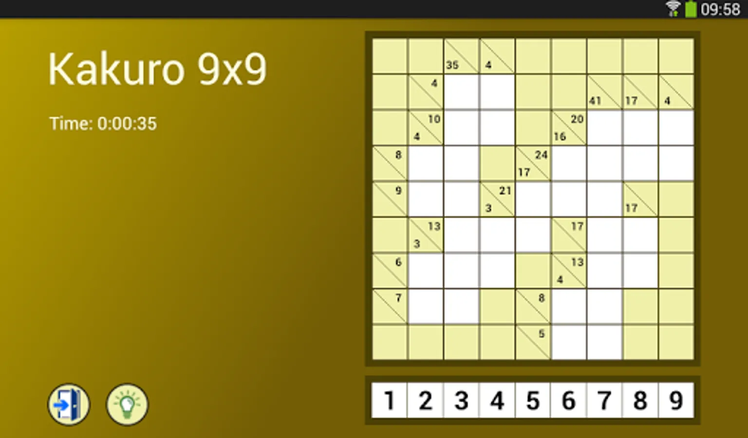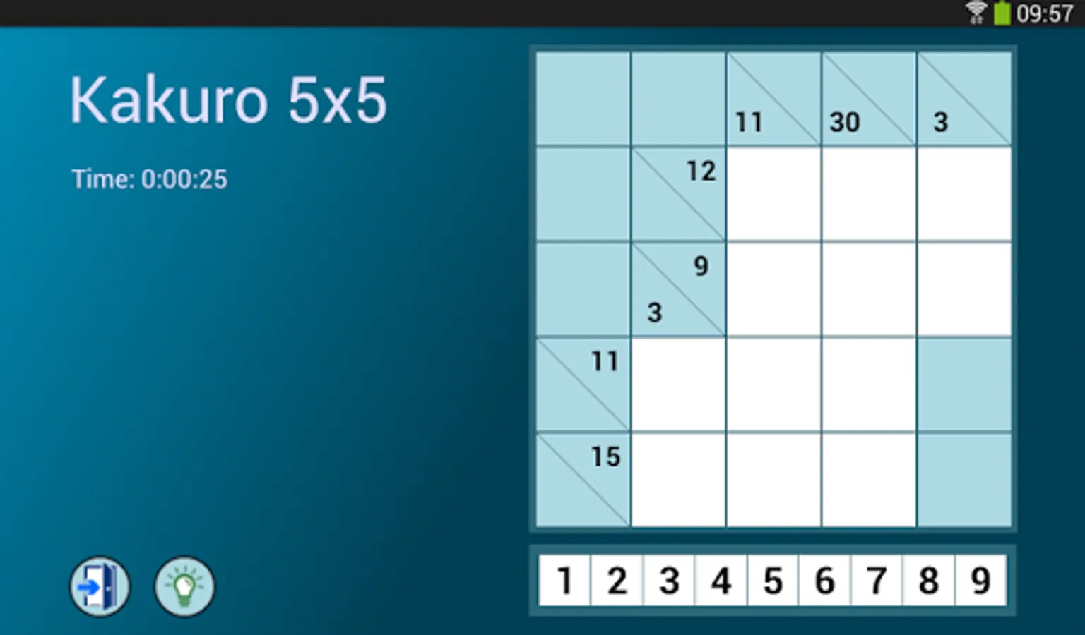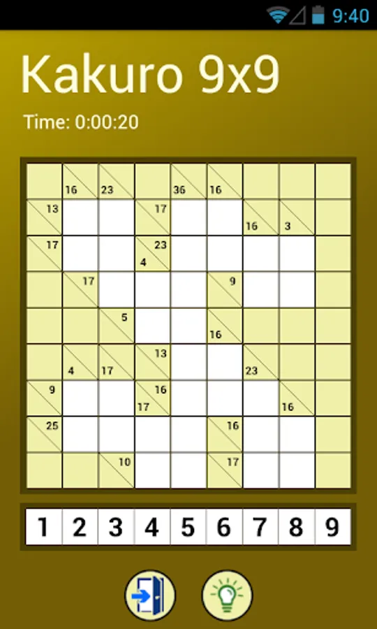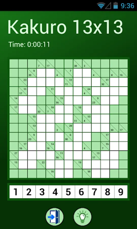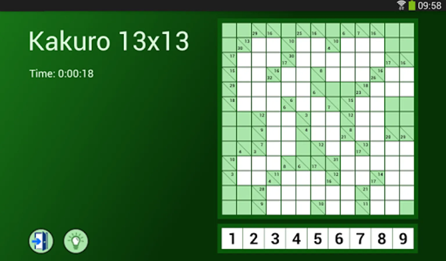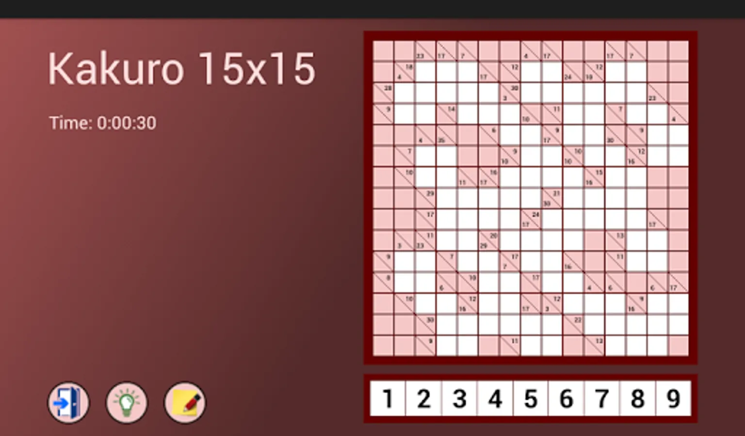 Kakuro puzzles are similar with crosswords, but instead of letters the board is filled with digits (from 1 to 9).