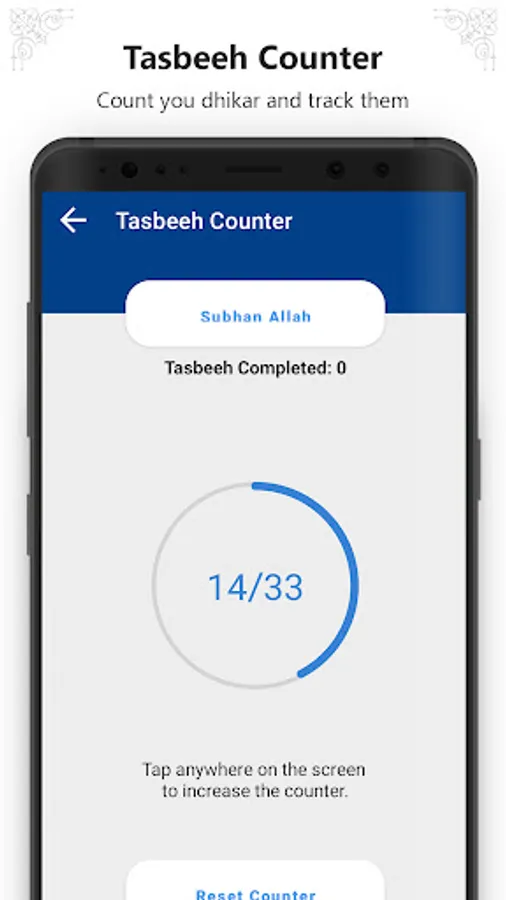 Increase your counting efficiency with the help of this digital tasbeeh counter app. Real tasbeeh counter app is very easy to use, you can easily count your daily azkar. Our digital tasbeeh counter app keeps you counts saved. When you restart your tally app your number of azkar will appear on your mobile screen.