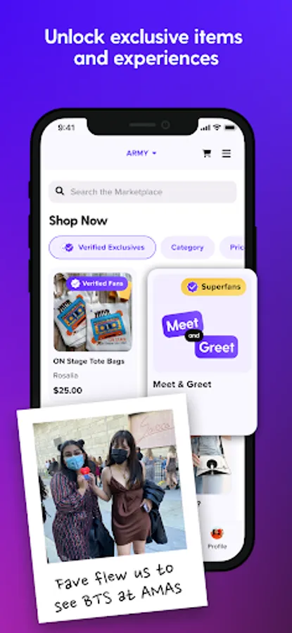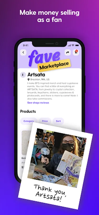 Buy and sell fan-created merchandise through the Fave Marketplace. This support will allow fans and the fandom to continue to create awesome goods for the fandom to collect and rep.