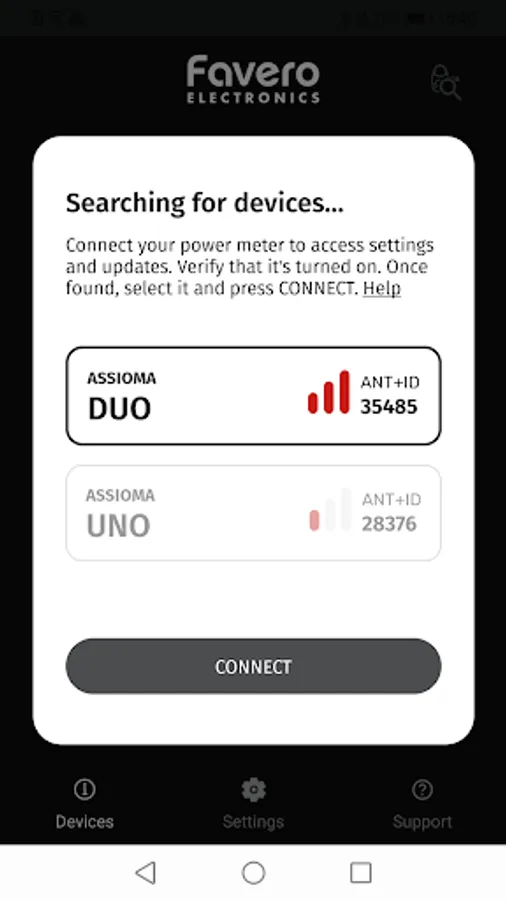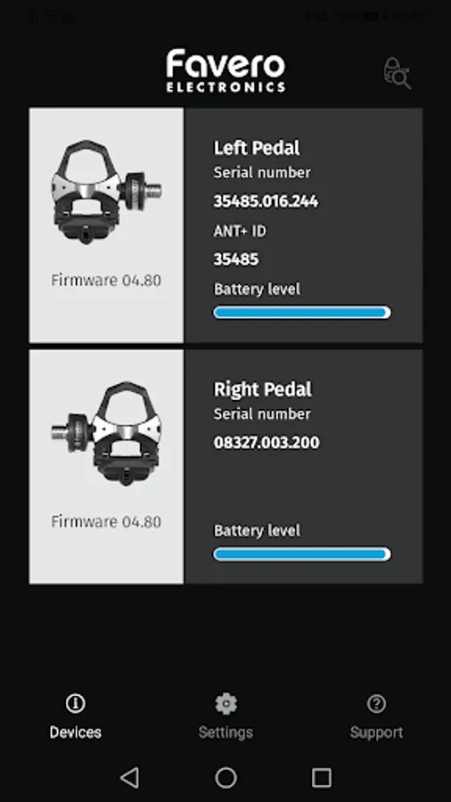 The Favero Assioma app is needed to activate the pedals and to access key functions like:
