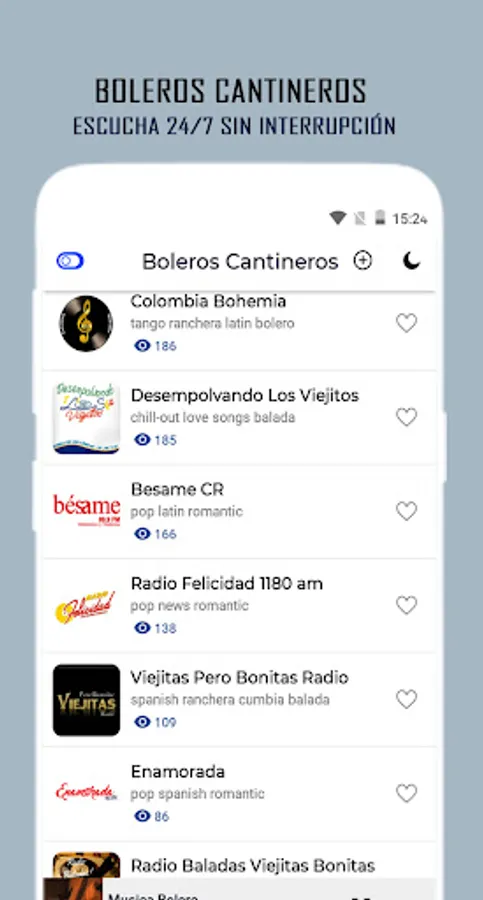 El siguiente aplicacion de Boleros Cantineros te permite llevar y disfrutar de una gran variedad de Boleros Antiguos en linea.