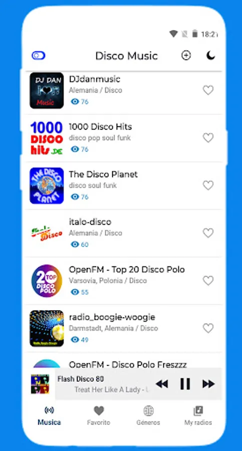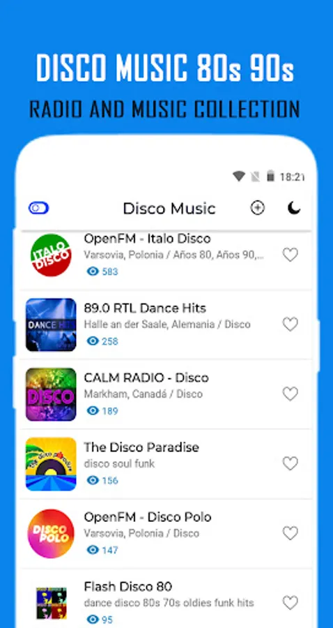 The following Disco Music 80s 90s app allows you to carry and enjoy a large number of varieties of free 70s and 80s disco music online.