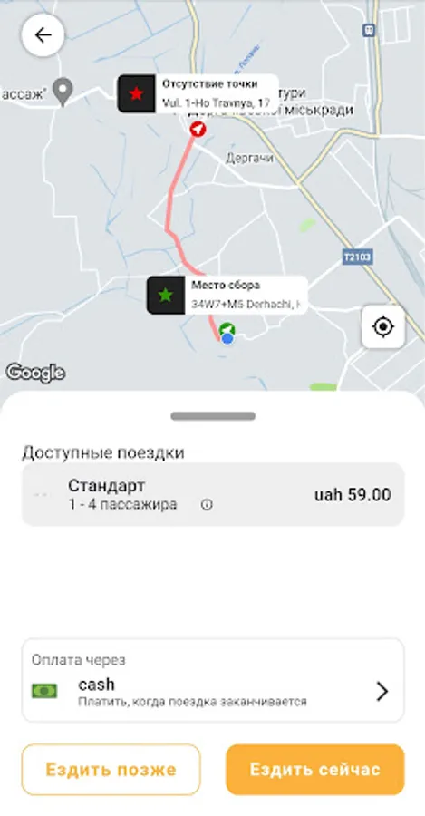 1. Відкрийте додаток та вкажіть місце призначення або виберіть місце на карті;