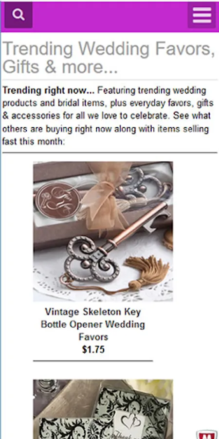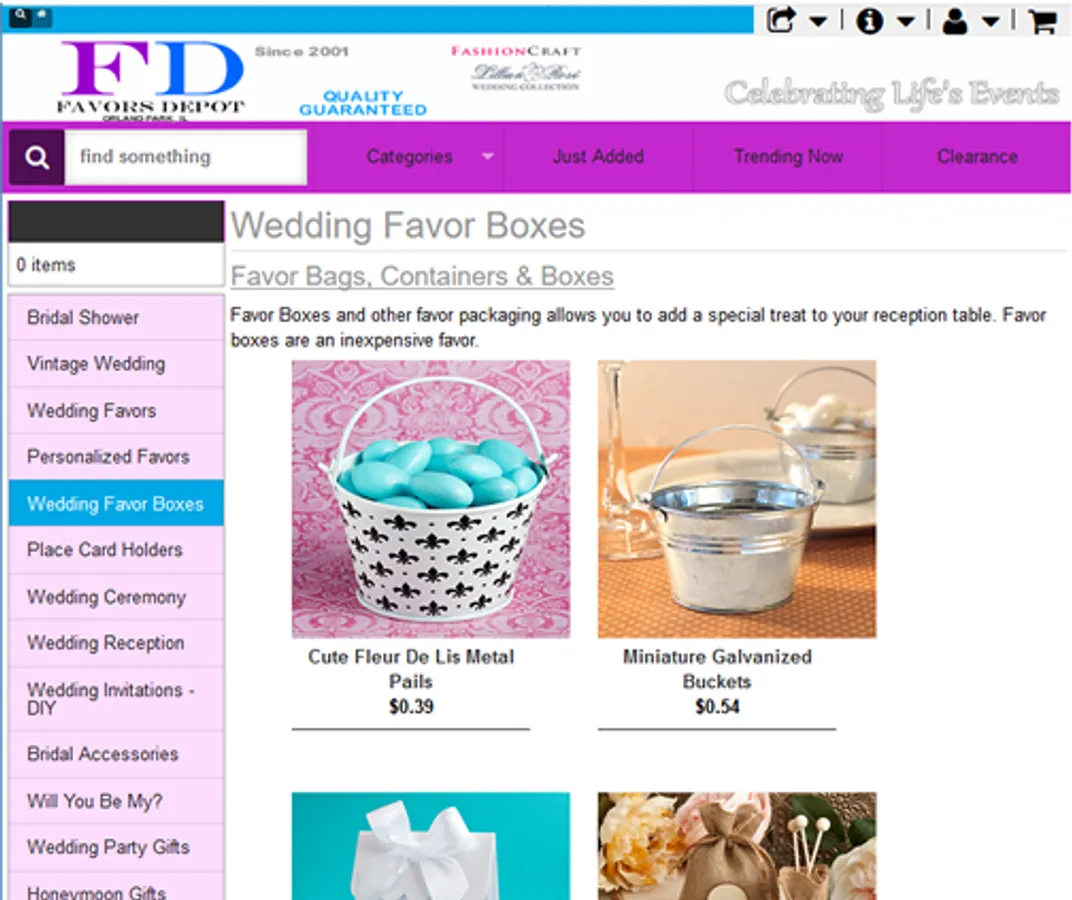 Party supplies, wedding favors and bridal accessories. Thousands of products from personalized favors and gifts to bachelorette party, graduation, baby shower, birthday and anniversary items. Find unique wedding supplies like cake toppers, ring bearer pillows, flower girl baskets, bridal shower favors and more. You can also create personalized products like favors, wedding ceremony & reception items, wall decor and much more. Store account data, use address book, track orders and get help when you need it. Favors Depot is perfect for wedding or party planning ideas and it's simple to use. You can also access your account on a PC or tablet.