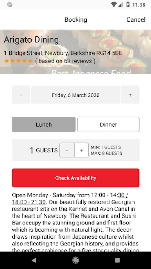 Our beautifully restored Georgian restaurant sits on the Kennet and Avon Canal in the heart of Newbury. The Restaurant and Sushi Bar occupy the stunning ground floor, which is beaming with natural light, making for quality lunch and dinner dining.