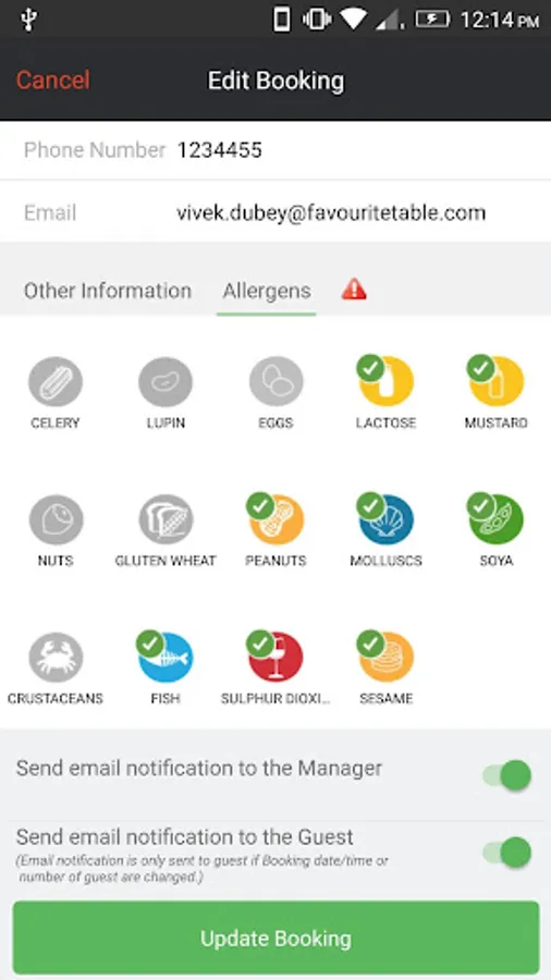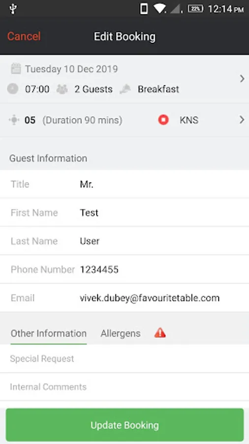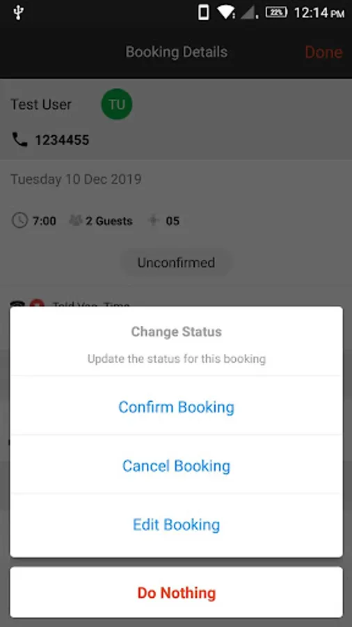 Bookings tab let you manage bookings of the day.