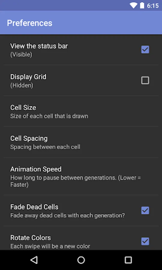 This is an implementation of Conway's Game of Life. Play around with the features to change many of the settings.