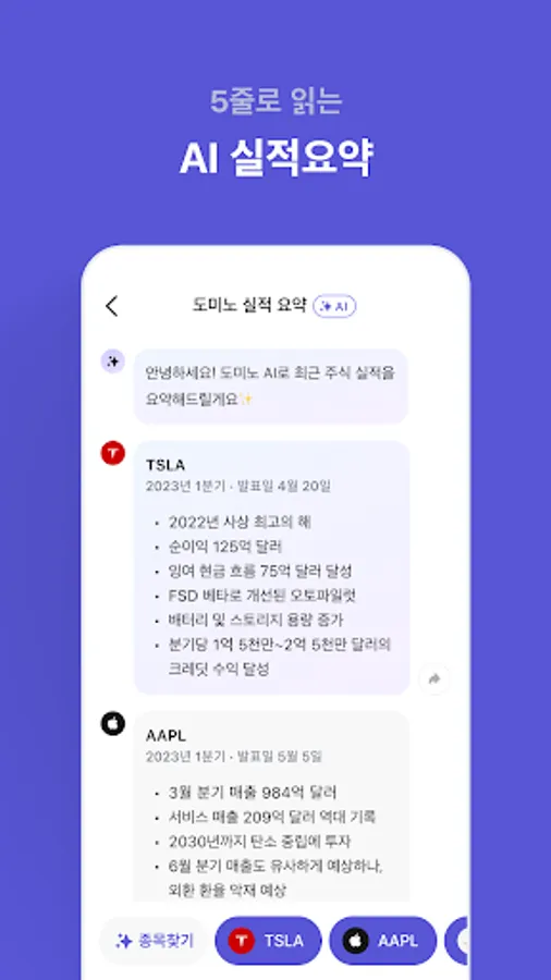-Check key information at a glance, including quotes, charts, trading volume, dividends, sales, and profits