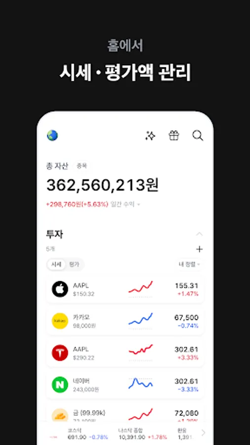 Invest in domestic stocks, overseas stocks, funds, real estate, and foreign exchange assets managed in one app