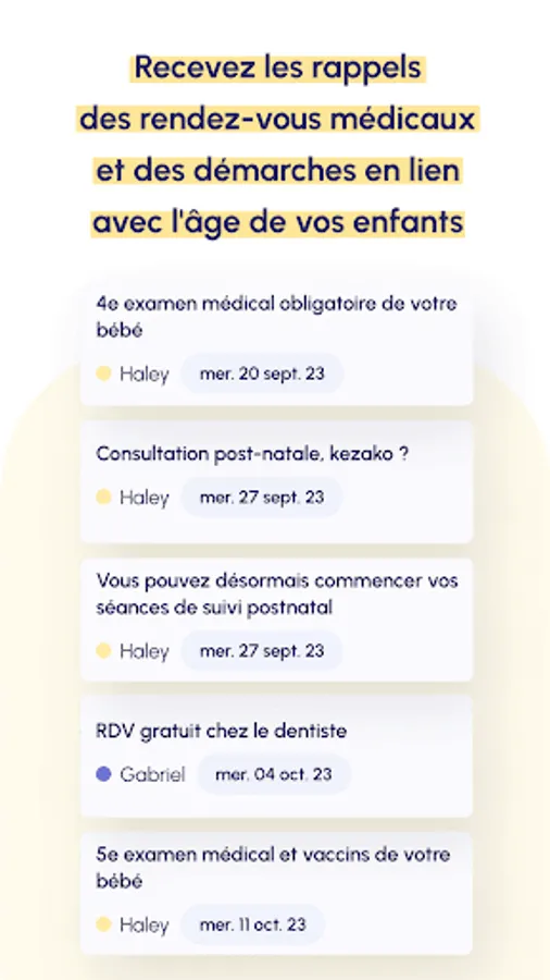 Reminders: Receive reminders of medical appointments and procedures related to the age of your children