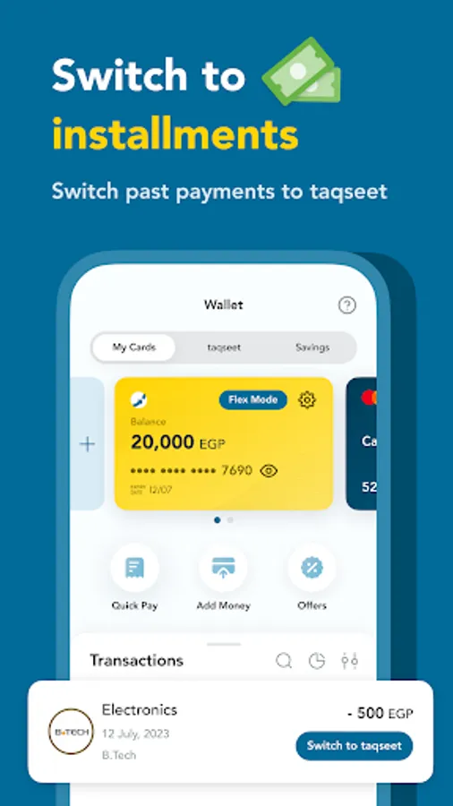 - Transfer money into your card from your registered bank cards on myfawry app (we accept debit and credit)