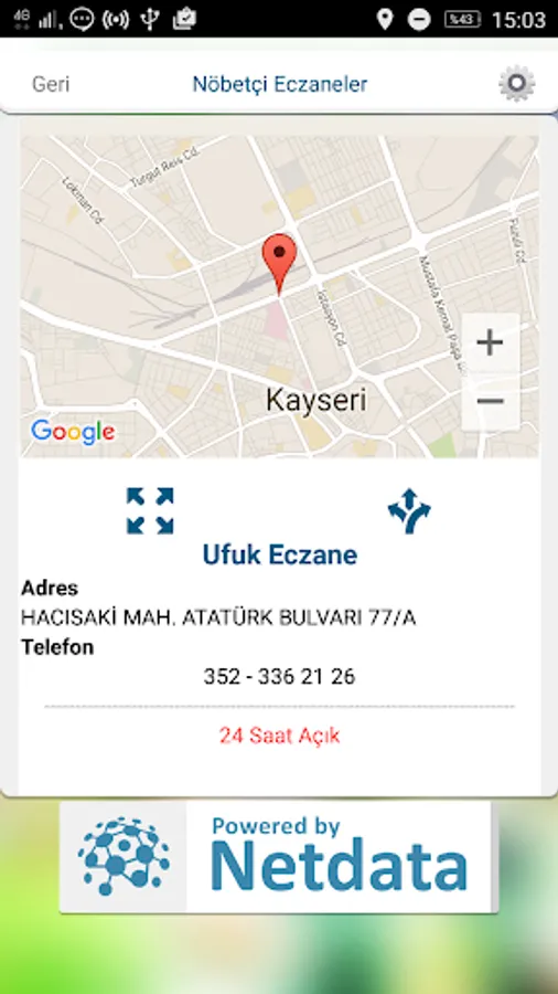 Turkey Pharmacy application shows your nearest pharmacy in your province or district.