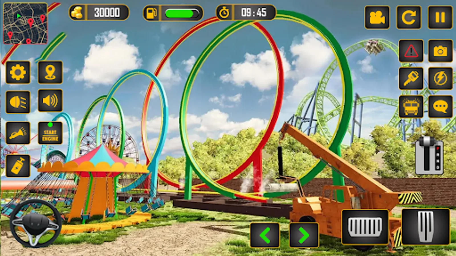 Enjoy roller coaster construction games and soar to greater heights than ever to reach high skies between the clouds. During this roller coaster construction game, use your driving skills and travel round the theme park to gather the material for construction. In this theme park roller coaster construction Simulator game, drive your loaded merchandising truck and reach your destination. Once you get behind the crane controls of your heavy construction crane your focus should be only on how to complete the construction simulator task effectively and efficiently. Be the part of gigantic crane construction and enjoy the ride of loader truck and excavator trucks. Dumper truck is also there you can enjoy its driving physics as well. In mud excavator you are going to enjoy the realistic 3d-graphics and smooth controls of the sand loader excavator games. Packed with full controls of heavy excavator dumper truck and other construction cranes, this game with give you hands on experience of maneuvering hydraulic river sand excavator crane using steering and other controls. This roller coaster simulator is the most fun ride of the theme park and it is electrifying and overwhelming while at full speed on the amazing tracks. Playing this roller coaster construction game will rid you of the fear of heights and you will never be scared again for sitting and riding fascinating and incredible roller coasters again in your life ever.